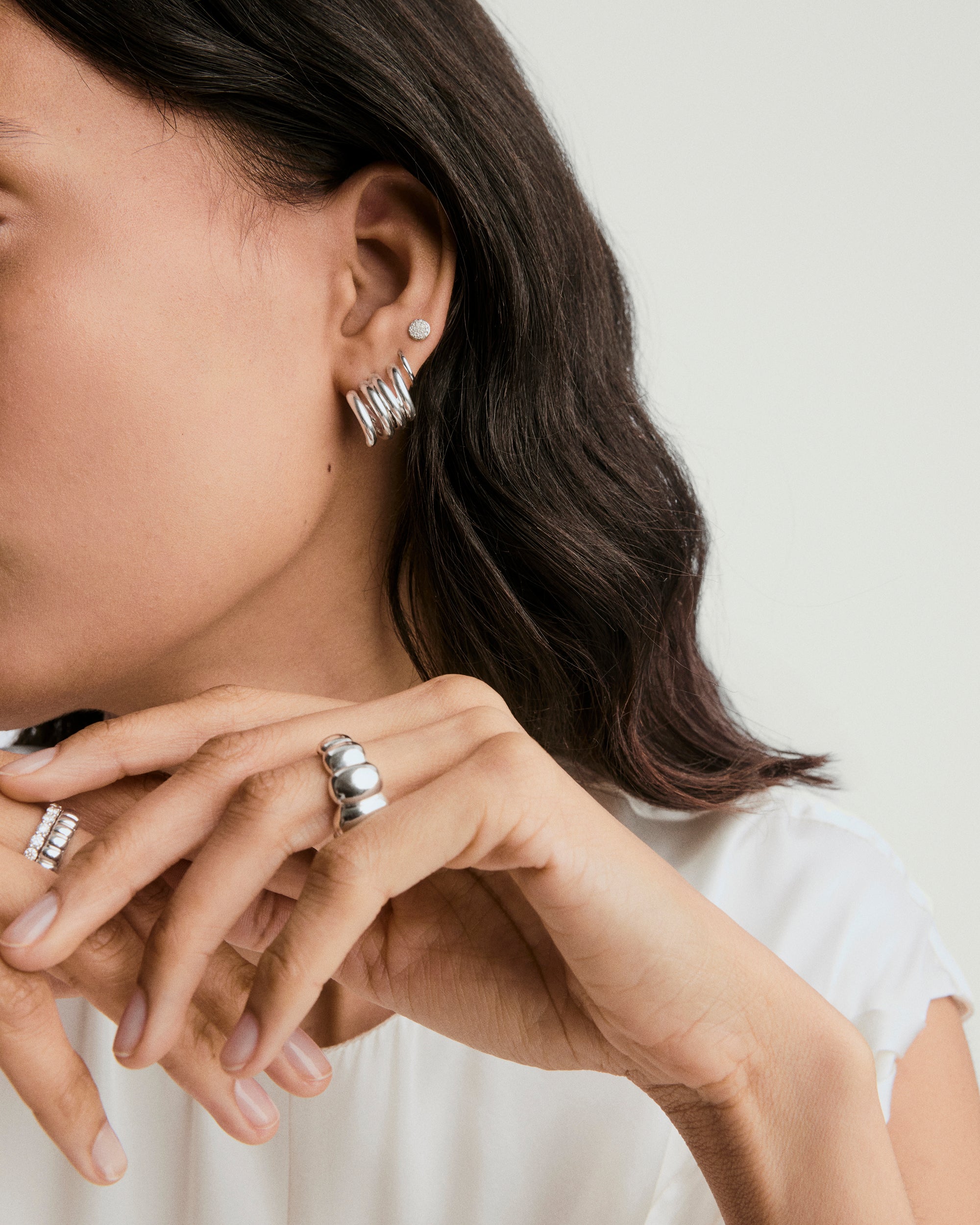 A unique coil shape makes this earring cool in a not-trying-too-hard way. At the same time they’re playful and bold. Try it as the foundation of an ear stack, or on its own as a statement maker.